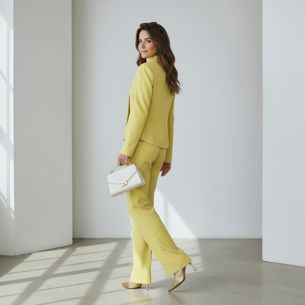 Ein ausdrucksstarker Zweiteiler in leuchtender Farbnuance feminin, modern und mit luxuriöser Leichtigkeit für einen unverwechselbaren Auftritt.
